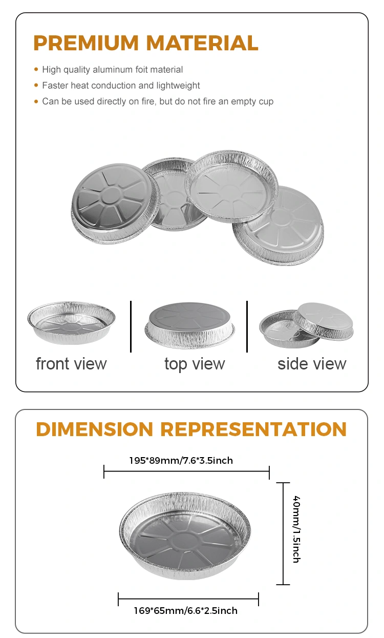 Il foglio di alluminio Yunchu offre contenitori in alluminio in alluminio in argento in argento da 7 pollici con numero 5067. Il prodotto ha un diametro superiore di 168 mm (circa 6,6 pollici), un diametro inferiore di 145 mm (circa 5,7 pollici) e un'altezza di 25 mm (circa 0,9 pollici). Con una capacità di circa 400 ml (circa 14,1 once), è l'ideale per la cottura della pizza senza attaccarsi durante la cottura, la stampo facile da rilasciare e nessun odore. Inoltre, il suo design pienamente crollato impedisce al cibo di fuoriuscire, aumentare la praticità. Possiamo anche fornire servizi di personalizzazione del logo per aiutarti ad approfondire l'impressione dei tuoi clienti e migliorare la visibilità del tuo marchio.