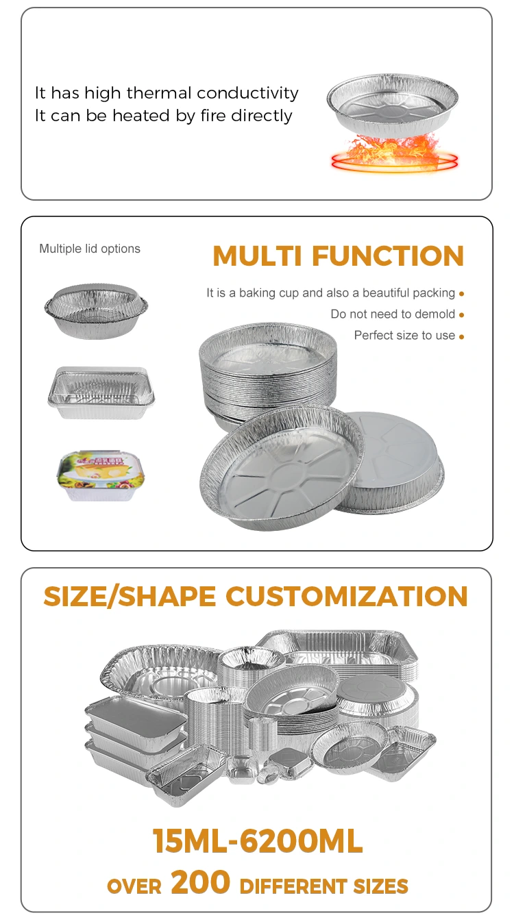 I contenitori in alluminio in alluminio in argento da 5067 pollici di tipo da 7 pollici forniti dalla fabbrica di forniture in alluminio Yunchu in alluminio è realizzata con materiale in alluminio in alluminio d'argento di alta qualità, che ha un aspetto alla moda ed elegante e buone prestazioni di conservazione del calore. Il design di grande capacità di questa padella per pizza consente di ospitare facilmente una varietà di cibi, che si tratti di un piatto principale per una cena in famiglia o una combinazione multi-disastro. Il suo ampio spazio di archiviazione è sufficiente per contenere una grande quantità di cibo, che si tratti di una riunione di famiglia o di una combinazione multi-dishish per asporto, può essere facilmente ospitato senza preoccuparsi di non avere abbastanza cibo.