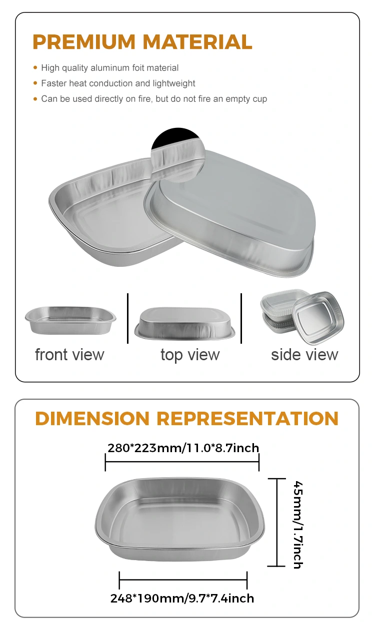 4. Le pentole per alimenti in foglio di alluminio a nastro quadrato da asporto adottano linee semplici e pulite, completate da una moderna lucentezza argentata. Può migliorare l'attrattiva visiva del cibo e la qualità complessiva, contribuendo a rafforzare l'immagine professionale e di alto livello del marchio.