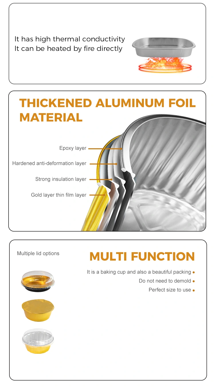 È la confezione perfetta per crostate all'uovo, brownies, cupcake, tranci di pizza o pasticceria sfoglia. La proprietà isolante del foglio di alluminio aiuta a mantenere il calore e la consistenza morbida dei pasticcini subito dopo la cottura; conserva perfettamente il sapore ed è adatto per l'asporto da panifici e bar.