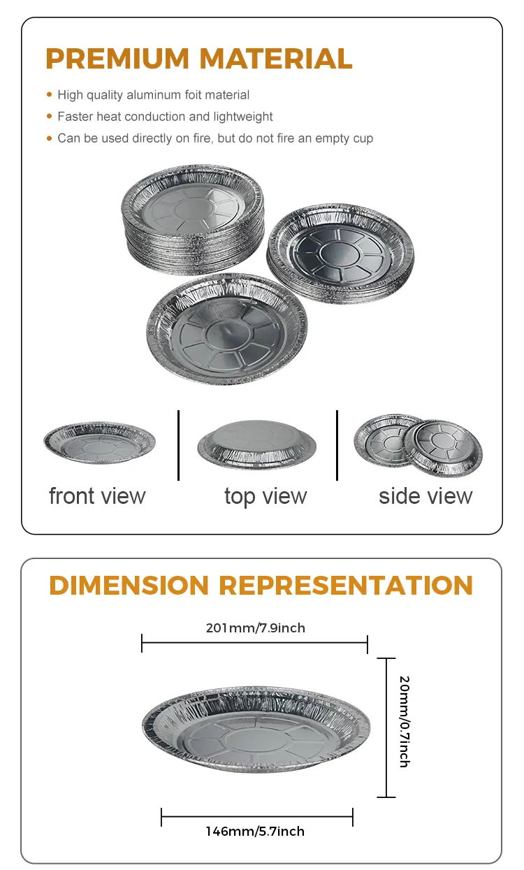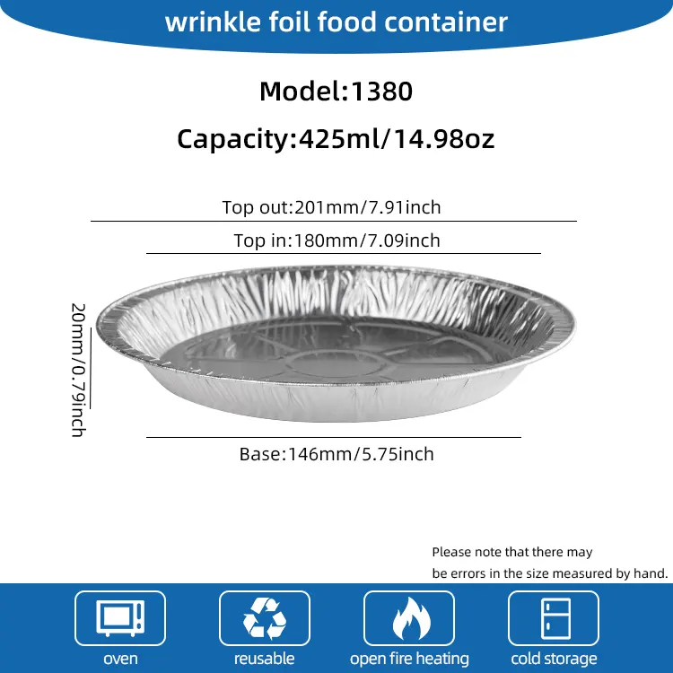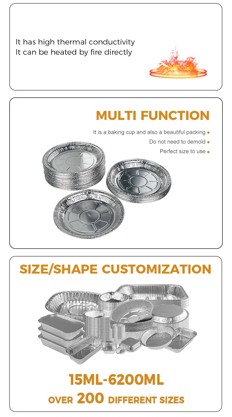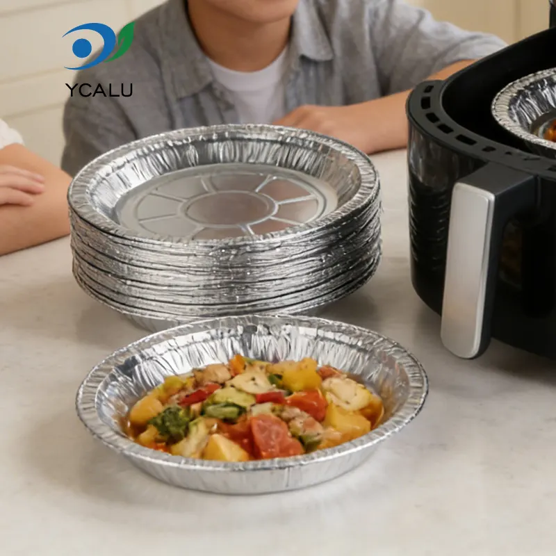 Il contenitore del foglio di alluminio argento della friggitrice ad aria con disco usa e getta del foglio di alluminio Yunchu è igienico e rispettoso dell'ambiente. È realizzato con materiali addensati e resistenti alla corrosione che non si deformano facilmente e possono entrare in contatto diretto con gli alimenti. Non ha paura delle alte temperature, non brucia, non brucia e non è facile da scaricare. Può resistere a temperature elevate fino a 250°C ed è adatto a vari metodi di cottura come cottura al forno ad alta temperatura, forno e barbecue, quindi non c'è motivo di preoccuparsi. Sono disponibili molteplici specifiche per soddisfare esigenze diversificate di cottura di diverse dimensioni, consentendo di far fronte facilmente alle varie esigenze di produzione alimentare.