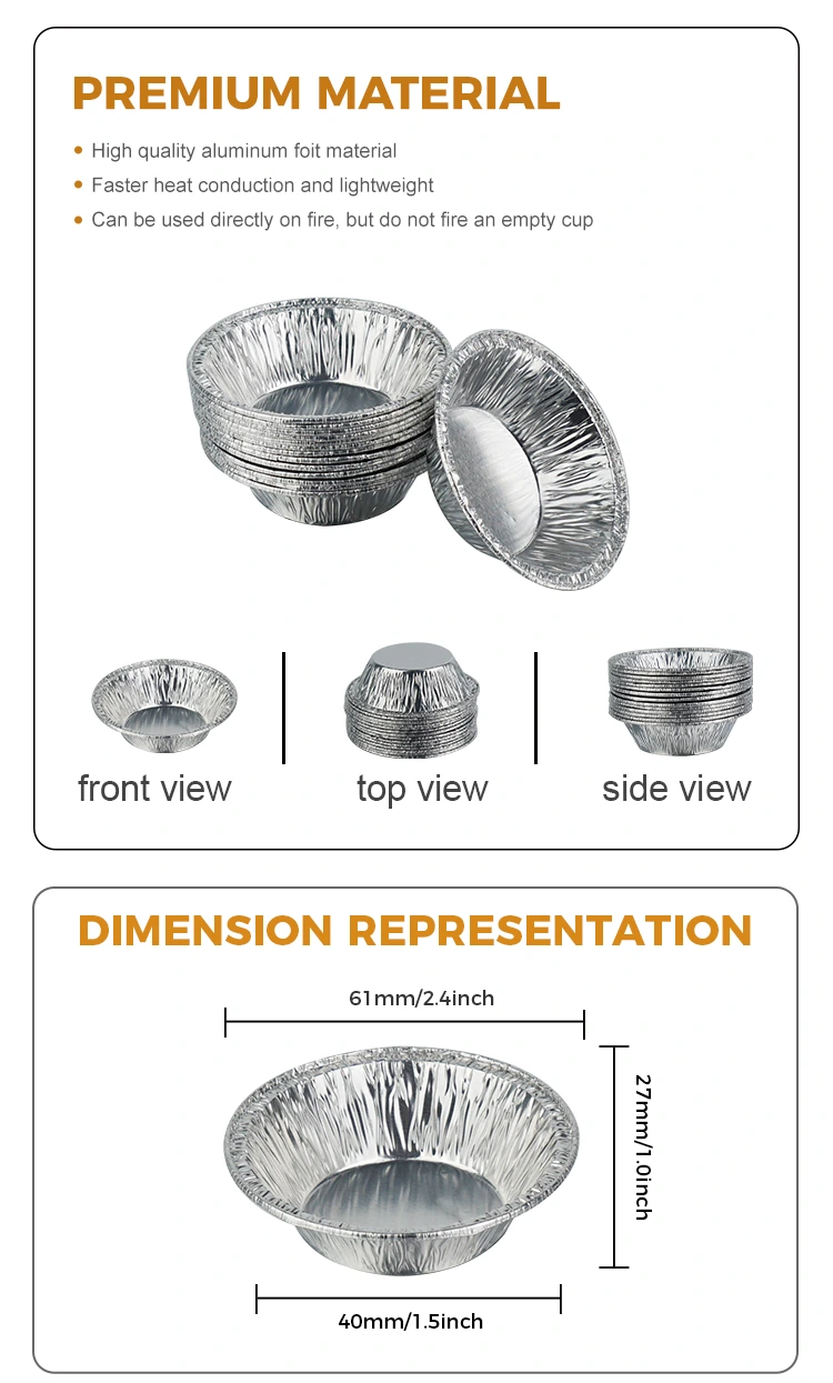 Dalle riunioni di famiglia alla produzione commerciale di massa, i contenitori in foglio di alluminio argentato con vassoio per crostate di uova usa e getta in foglio di alluminio Yunchu sono adattabili a tutti gli scenari, sbloccando diverse deliziose possibilità:
