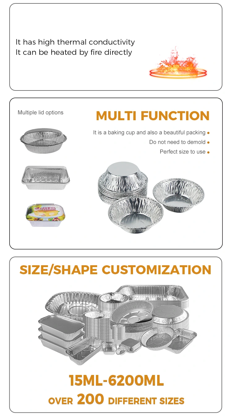 Il contenitore in foglio di alluminio argento con vassoio per crostata di uova usa e getta di Foshan Yunchu Aluminium Technology Co., Ltd., basandosi su linee di produzione automatizzate avanzate e un rigoroso controllo di qualità, realizza artigianalmente il contenitore in foglio di alluminio argento con vassoio per crostata di uova usa e getta in foglio di alluminio Yunchu, con materiali per uso alimentare e prestazioni eccellenti, adatto a molteplici scenari domestici e commerciali, rendendo la cottura più senza preoccupazioni e deliziosa.