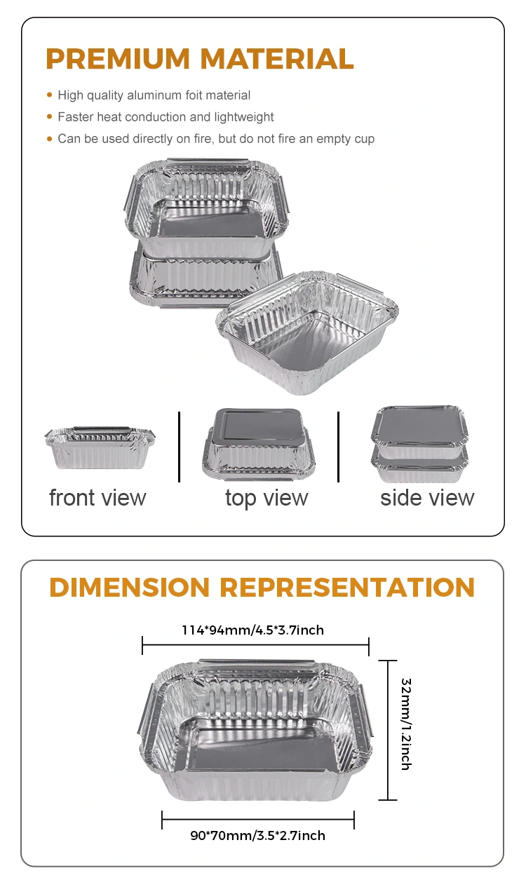 Contenitori in alluminio in alluminio in alluminio in alluminio in alluminio in alluminio in alluminio in alluminio in alluminio in alluminio. Questo prodotto è progettato per una varietà di alimenti come griglie, cottura, friggitrici e piatti pre-fatti, specialmente per coloro che amano barbecue all'aperto e incontri familiari.
