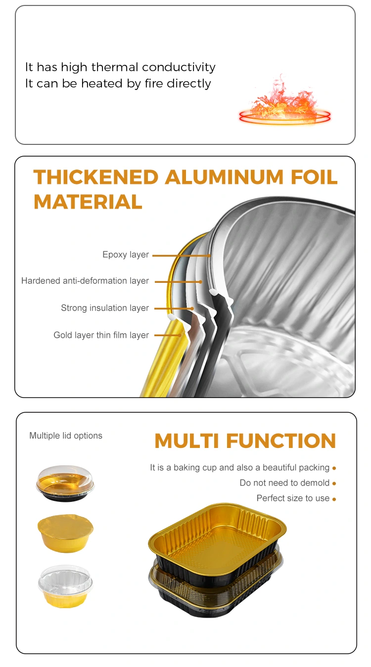 I contenitori in foglio di alluminio a pareti leggere da asporto rettangolari monouso del fornitore di fogli di alluminio Yunchu sono realizzati per uso alimentare. Sono stati rigorosamente lavorati e selezionati e non hanno odori particolari. L'intero processo di produzione viene completato in un'officina pulita e priva di polvere, senza additivi nocivi. Anche riso, carne, zuppa, ecc. Possono essere in contatto diretto. Questo contenitore in foglio di alluminio ha superato la certificazione alimentare statunitense FD A, seguendo rigorosamente gli standard FDA. Dopo test professionali, la quantità di migrazione dell'alluminio è di gran lunga inferiore al limite specificato e il test è conforme agli standard. Abbiamo ottenuto un rapporto di prova formale. Non solo può essere utilizzato nella ristorazione domestica, ma soddisfa pienamente anche i requisiti per l'esportazione all'estero. Doppia garanzia, che si tratti di catene di fast food, cucine private o commercianti da asporto transfrontalieri, può essere utilizzato. È affidabile e può facilmente resistere a differenze di temperatura estreme da -20°C a 250°C. Dalla refrigerazione del frigorifero e dal congelamento al riscaldamento a microonde, alla cottura in forno e persino al riscaldamento a fiamma libera (richiede strumenti di isolamento termico), può essere utilizzato per confezionare zuppe calde e piatti caldi da asporto. Anche se mantenuto caldo per lungo tempo, il contenitore non si ammorbidisce né si deforma, né si scioglie né produce gas nocivi; dopo aver ricevuto il cibo, i consumatori non devono cambiare il contenitore, ma metterlo direttamente nel forno a microonde per riscaldarlo. Inoltre, conduce il calore in modo uniforme, quindi non si verificherà un surriscaldamento locale o il cibo verrà intrappolato durante il riscaldamento. Può trattenere il sapore del cibo nella massima misura. Che si tratti di riso cotto, stufati, barbecue o semilavorati da forno, è adatto per il confezionamento.