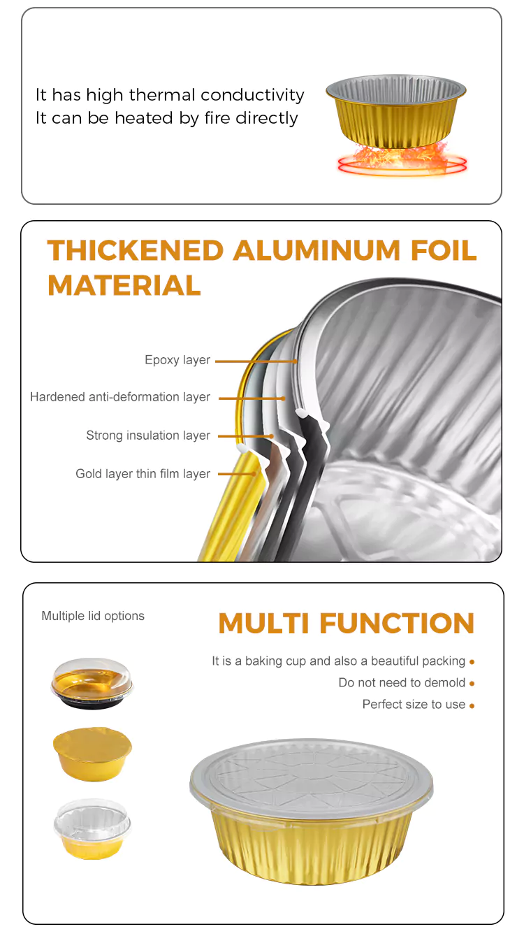 Tag caldi: Contenitori monouso rotondi in foglio di alluminio dorato di grande capacità