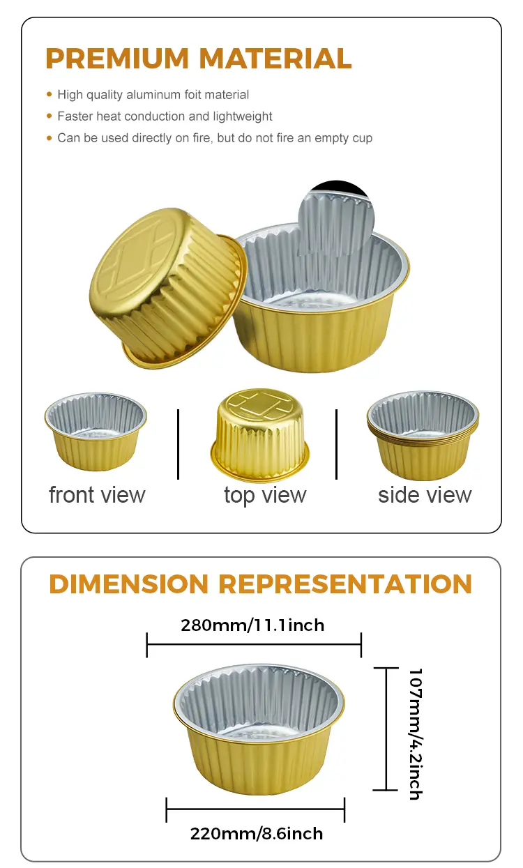 Contenitori per fogli di alluminio rotondo dorato usa e getta