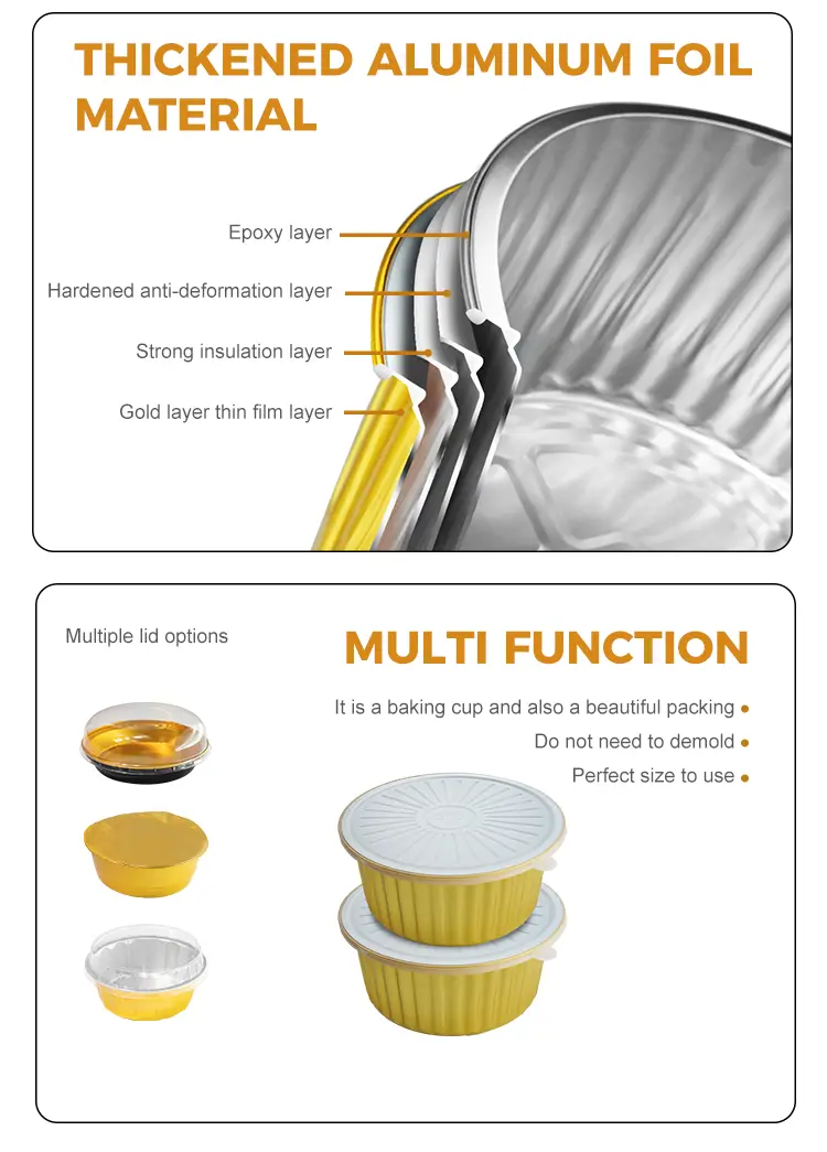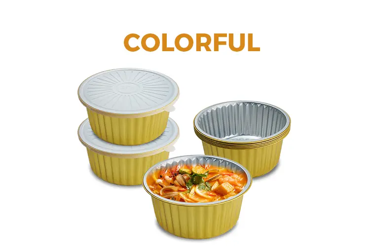 • Contenitori per fogli di alluminio rotondo dorato usa e gettaContenitori per fogli di alluminio rotondo dorato usa e getta