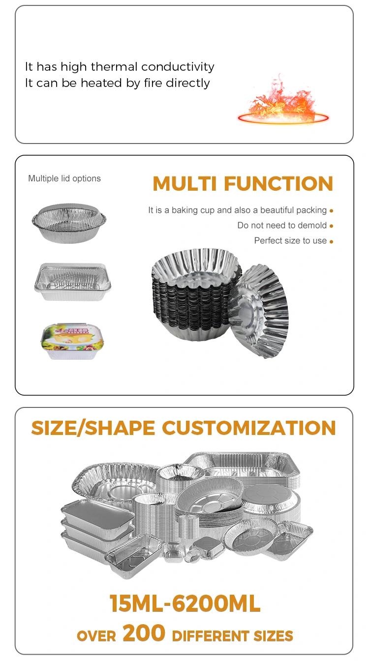 Il contenitore alimentare alimentare in alluminio in alluminio in alluminio in alluminio in alluminio in alluminio, sia che siano fatti in casa o prodotti commercialmente, per soddisfare le diverse esigenze. Il suo materiale ecologico e sicuro e il design versatile lo rendono una scelta ideale per gli appassionati di cottura.