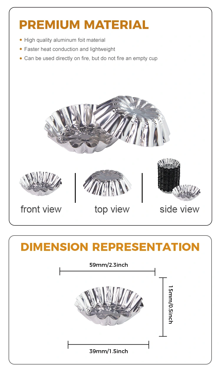 Le crostate di uova in alluminio yunchu sono cotte in un contenitore alimentare in alluminio argento in alluminio ad aria Prodotti all'ingrosso, materiale in alluminio, sicuro e non tossico, fatto di materiale per alimenti in alluminio in alluminio, con buona conduttività termica, usi sicuri e non tossici sono ricchi e diversi Arrivederci al problema di lavare la pentola e proteggere facilmente la pentola, isolare le macchie di olio dopo l'uso, non è necessario essere puliti, il fondo liscio non è facile da bruciare e attaccarsi al fondo, il cibo antiaderente è facile da cuocere, il fondo è liscio, può resistere a -20 ° C ~ 300 ° C, può essere riscaldato da una fiamma aperta e lo stampo è riscaldato equamente.