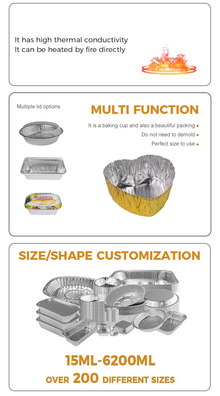 Fornitore di fogli di alluminio Yunchu Mini Contenitore alimentare in alluminio in alluminio in alluminio a forma di cuore è molto adatto per piccoli imballaggi, applicazioni di cottura, design unico, design a forma di cuore, può soddisfare una varietà di usi, una cosa per più scopi, l'uso può posizionare un piccolo cibo per il cioccolato per il cioccolato. Altri alimenti dallo scivolamento e possono migliorare la resistenza allo slittamento, una varietà di colori possono essere personalizzati.