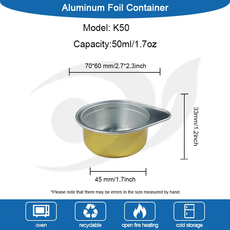 Fornitore di fogli di alluminio Yunchu K50 Capsula di caffè vuota senza guarnizioni in silicone termosaldante Parte superiore: 70 * 60 mm, 2,7 * 2,3 pollici, Base: 45 mm, 1,7 pollici, Altezza: 33 mm 1,2 pollici, può contenere 50 ml di cibo da 1,9 once, può essere applicata a tutte le macchine da caffè Nespresso (nespresso), polvere per caffè espresso confezionata o risciacquata con azoto per periodi prolungati durata di conservazione.