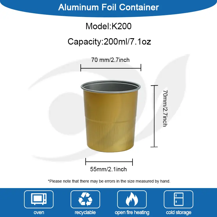 Modello di fabbrica di forniture per lamina in alluminio Yunchu K120 CAFFERMA DEL CAFFERMARE UNA TOCCA , Diametro superiore 60 mm (2,3 pollici), diametro inferiore 48 mm (1,8 pollici), altezza 63 mm (2,3 pollici). L'importo è di circa 120 ml (4,2 once), questa tazza di bevande da caffè usa e getta viene utilizzata in una varietà di accampamento commerciale, campeggio, familiari, ecc., Con una vita bella ed elegante, la vita di abbellimento pratico e di alto valore, per essere una persona di buon gusto, questo prodotto ha uno strato spessato per far dissipare il calore.
