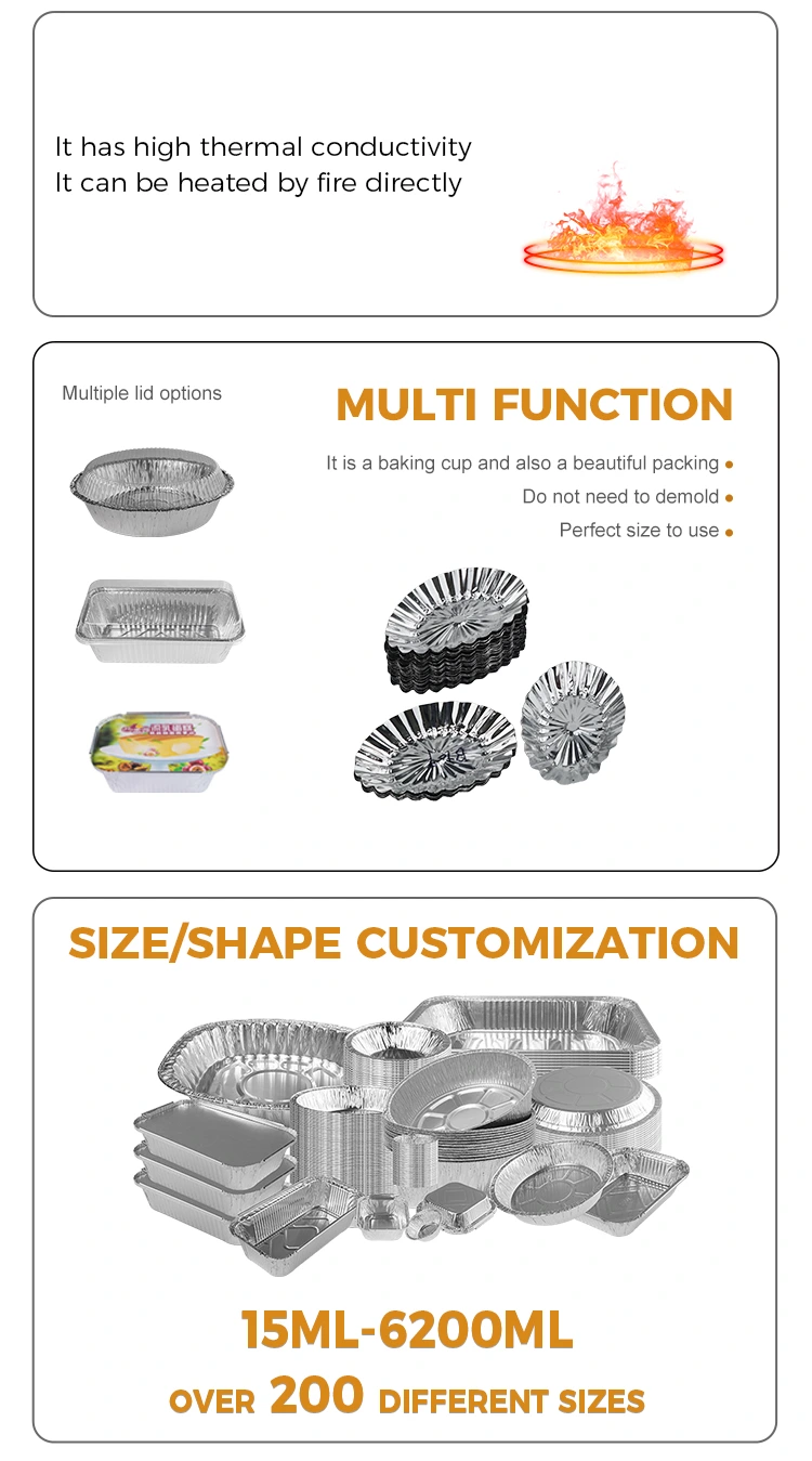Il contenitore alimentare in alluminio in alluminio in alluminio ovale in alluminio in alluminio in alluminio è un buon partner per la cottura, sia come stampo che come imballaggio. È realizzato in materiale ispessito e duro, che non è facile da deformarsi e ha una forte resistenza alla pressione, quindi puoi dire addio al problema di lavare la pentola e proteggere facilmente la pentola. Isolare il grasso, non è necessario lavarsi dopo l'uso, il fondo liscio non è facile da bruciare e attenersi al fondo, non si attacca al cibo, facile da cuocere. Il fondo è liscio, in modo da poterlo usare con più tranquillità, facile da rilasciare lo stampo quando lo si utilizza ad alta temperatura, facile da rilasciare lo stampo dopo il completamento del prodotto finito, non si attacca al fondo, non danneggia la forma. Materiale addensato e duro, forte resistenza alla pressione, salutare il problema di lavare le pentole e proteggere facilmente la pentola. Isolare il grasso, non è necessario lavarsi dopo l'uso, il fondo liscio non è facile da bruciare e attenersi al fondo, non si attacca al cibo, facile da cuocere. Il fondo è liscio, può resistere da -20 ° C a 300 ° C, può essere riscaldato su una fiamma aperta e lo stampo viene riscaldato uniformemente.
