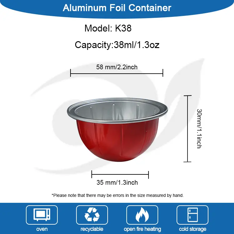 Foglio di alluminio Yunchu K38 pianeta Specifiche della capsula del caffè vuoto: 58*35*30mm (2,2*1,3*1,1 pollici) La capacità può contenere 38 ml (1,3 once) di caffè, liquido di caffè. Adattati alla maggior parte delle macchine per capsule espresso (polvere espresso, liquido espresso), tè, salse e altre esigenze di imballaggio, è possibile anche personalizzare il logo, il colore e puoi stampare il motivo sulla copertura del foglio di alluminio e può anche essere timbrato sul fondo della capsula del caffè.