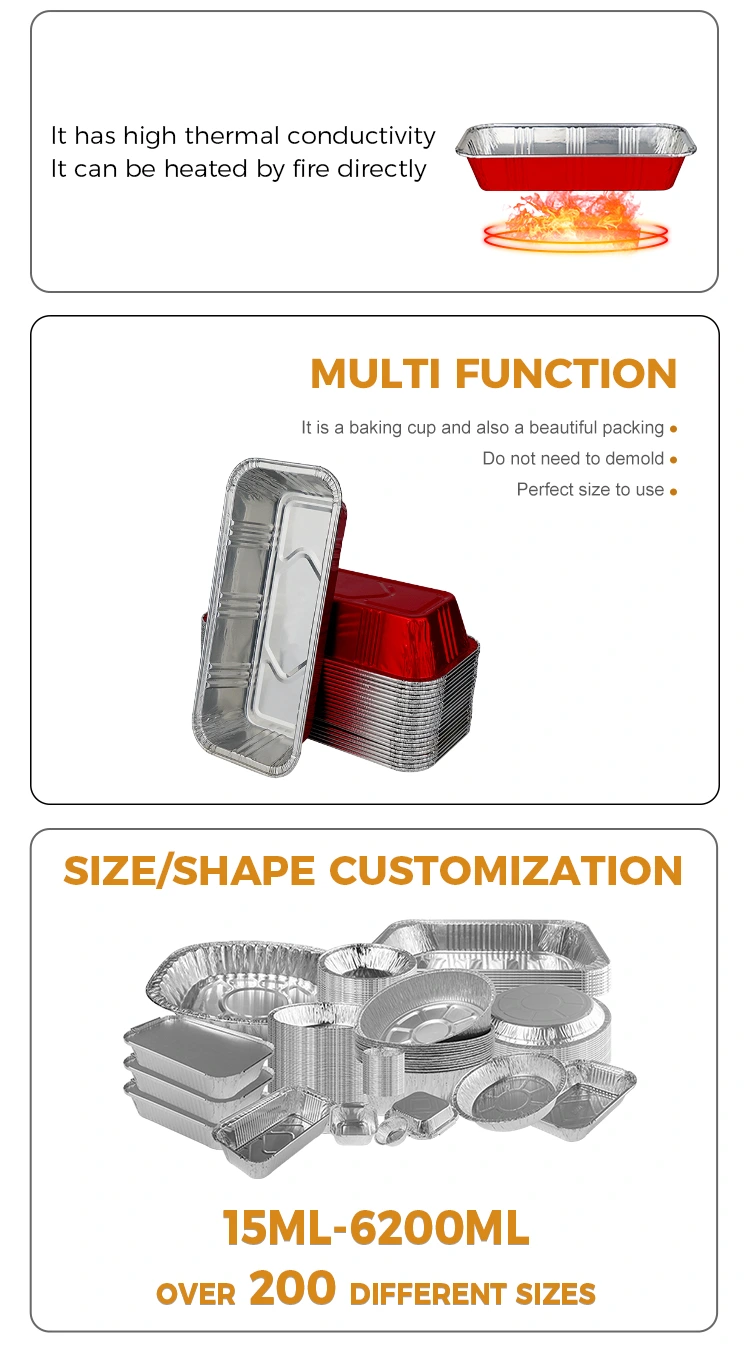 Yunchu Aluminium Foil ti offre contenitori rettangolari in alluminio argentato per panetteria rossa di alta qualità, progettati per essere durevoli e resistenti al calore, possono condurre uniformemente il calore per prevenire la carbonizzazione e hanno una forte tenuta per mantenersi freschi.
