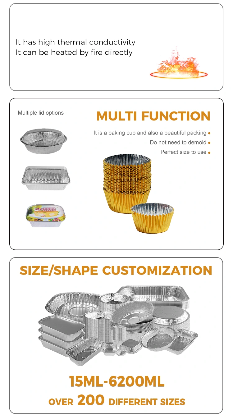 Questo piccolo contenitore in alluminio in alluminio argento è adatto per l'imballaggio di tutti i tipi di piccoli prodotti da forno, controlliamo rigorosamente ogni fase di produzione in termini di controllo di qualità per garantire che tutti i prodotti soddisfino gli standard di sicurezza nazionali e abbiano superato la certificazione ERP tedesca, la certificazione UE SGS e la certificazione ISO9001.